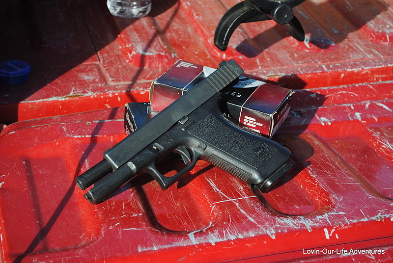 We only ran a few rounds through our pistols, as Ed mainly want to check the alignment on his laser sight. I shot a few few just to keep up the ole double tapping skills.